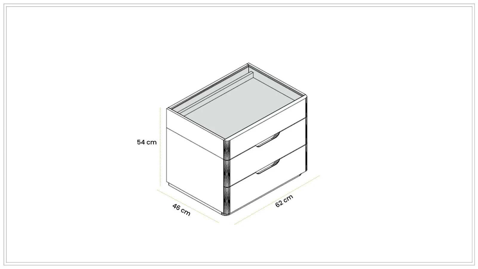 Noptiera Bergamo aduce un plus de eleganță și funcționalitate dormitorului tău, fiind concepută pentru a completa în mod armonios patul din aceeași colecție. Designul său rafinat, ce combină finisajele premium cu detaliile moderne, oferă un aspect sofisticat și practic în același timp. Cu sertare spațioase și blat cu accente elegante, noptiera Bergamo este ideală pentru organizarea obiectelor esențiale, păstrând în același timp un aer curat și ordonat.