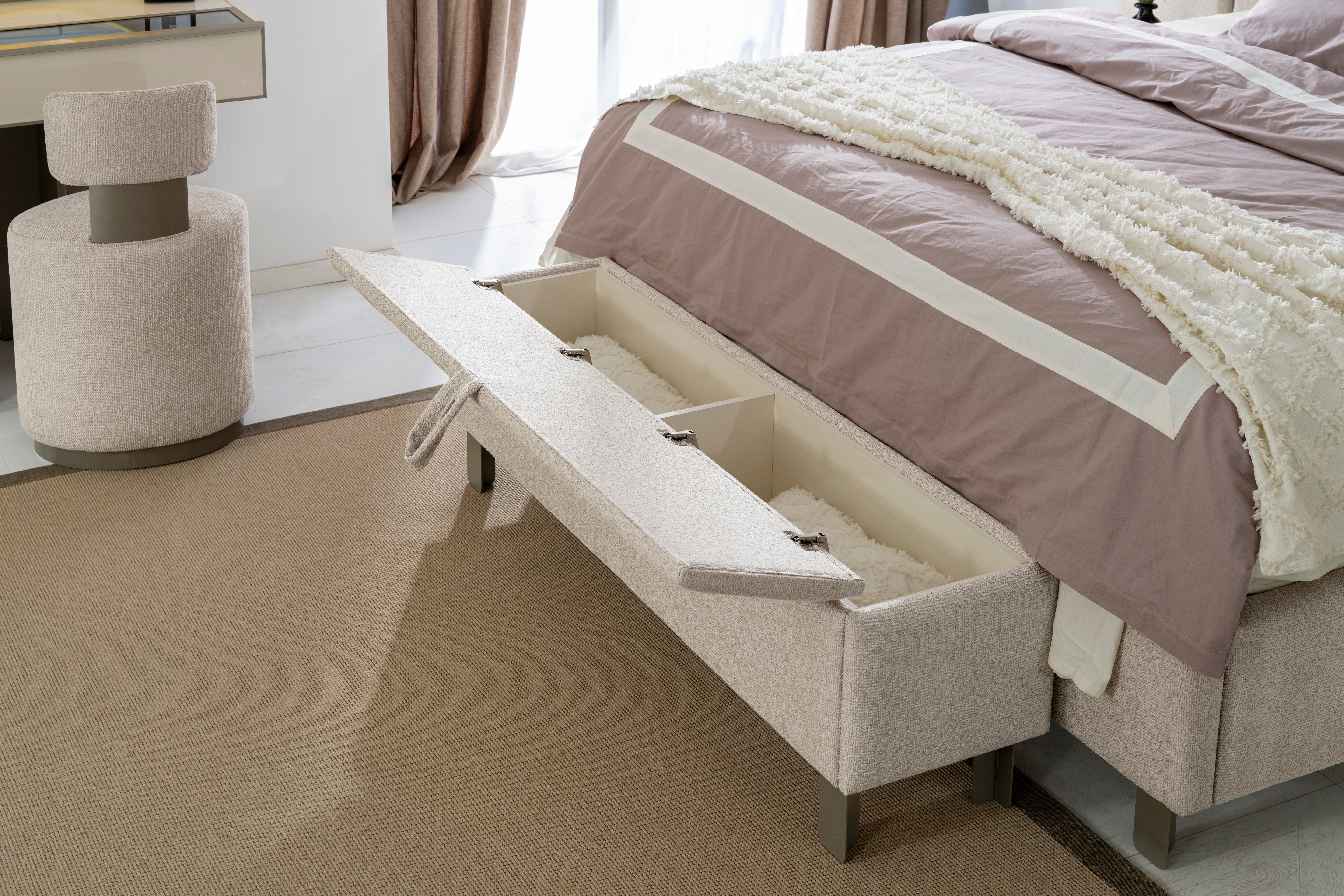 Designul curat, cu linii rotunjite si finisaje lucioase, aduce un plus de armonie si rafinament dormitorului tău.