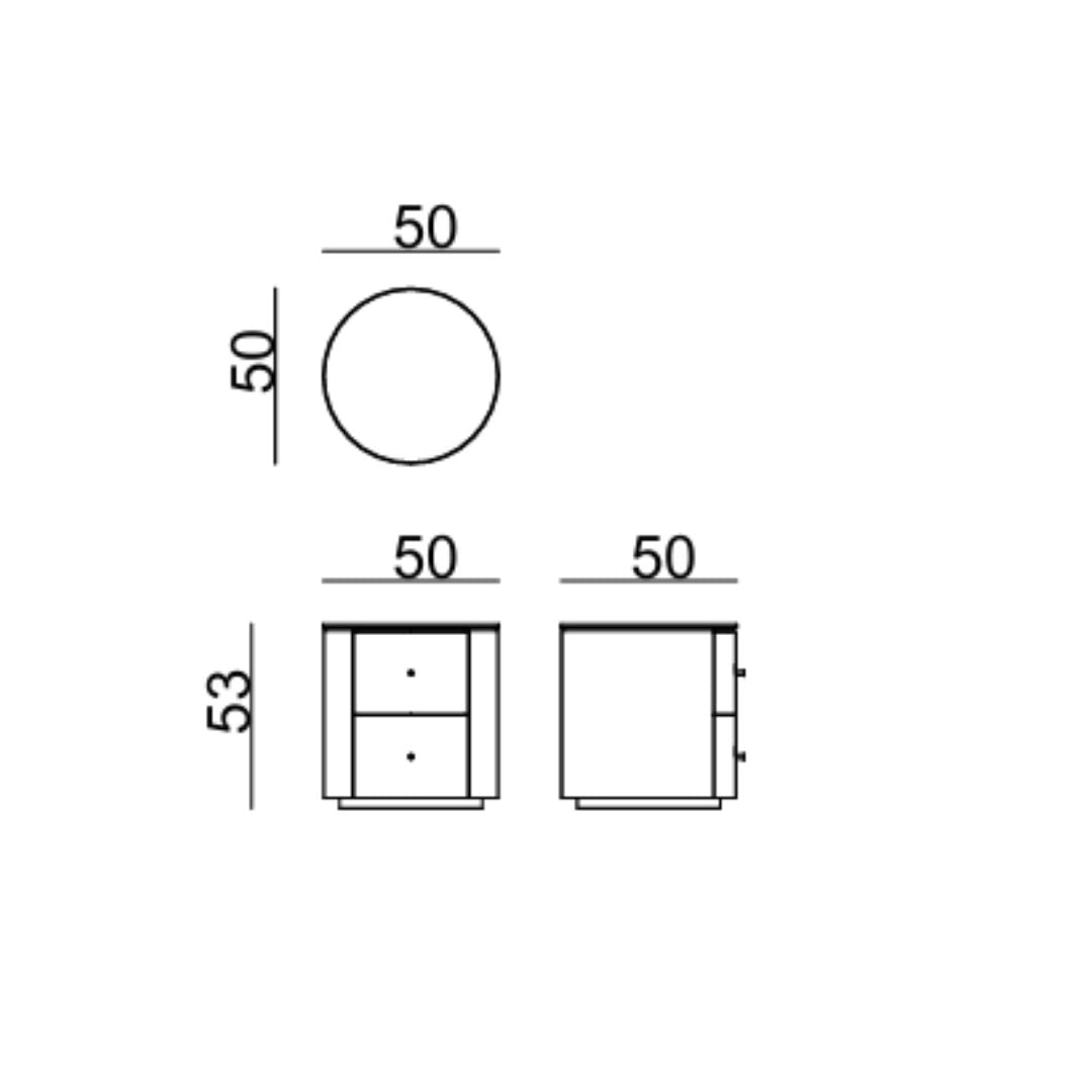 Dimensiuni noptiera cu 2 sertare: D:50cm x H: 53cm x W: 50cm
