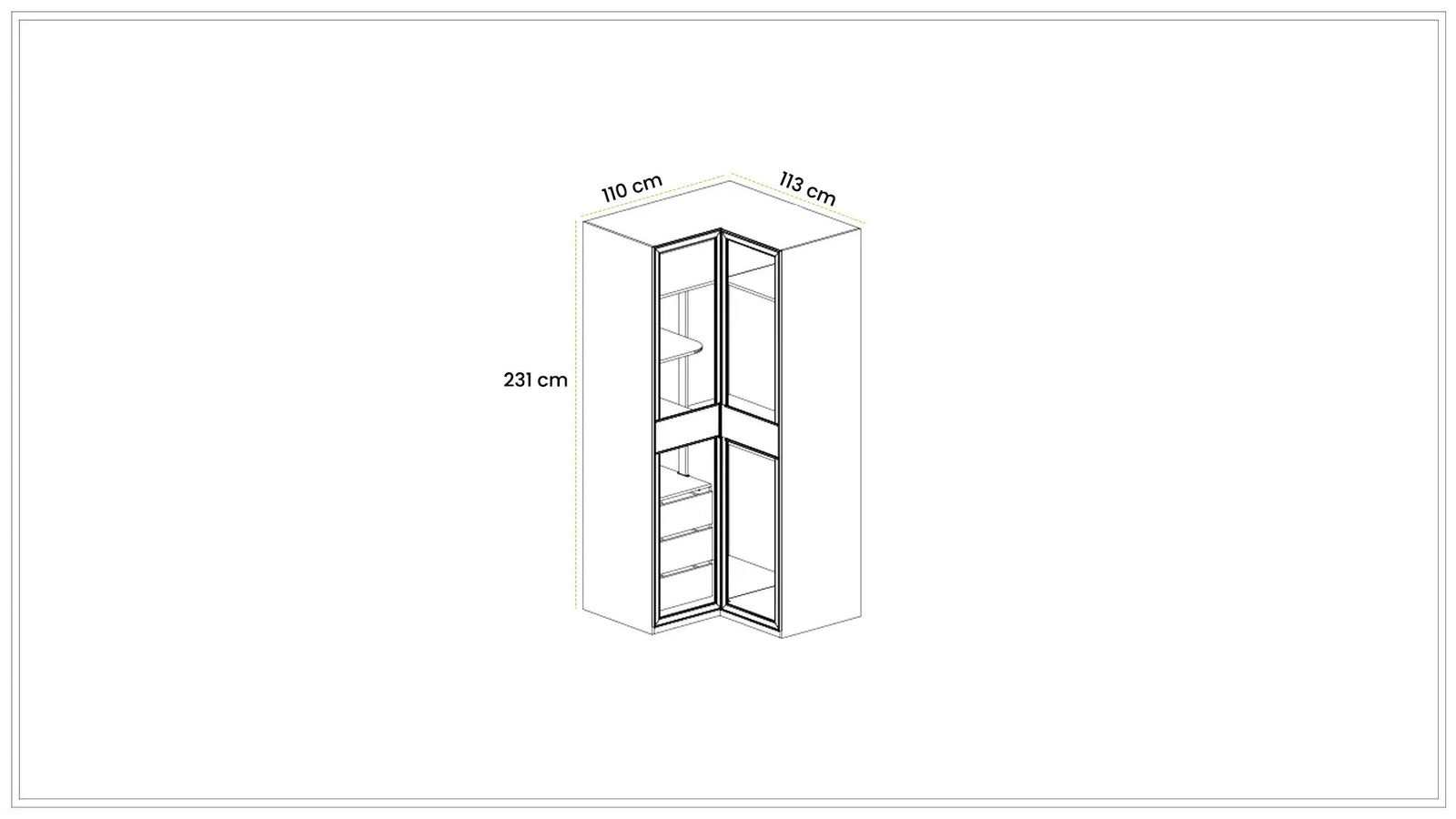 Dulapul de colț Savoy Alpin este piesa esențială pentru a valorifica la maximum colțurile unei camere, transformându-le în spații de depozitare elegante si funcționale. Colecția oferă trei variante: