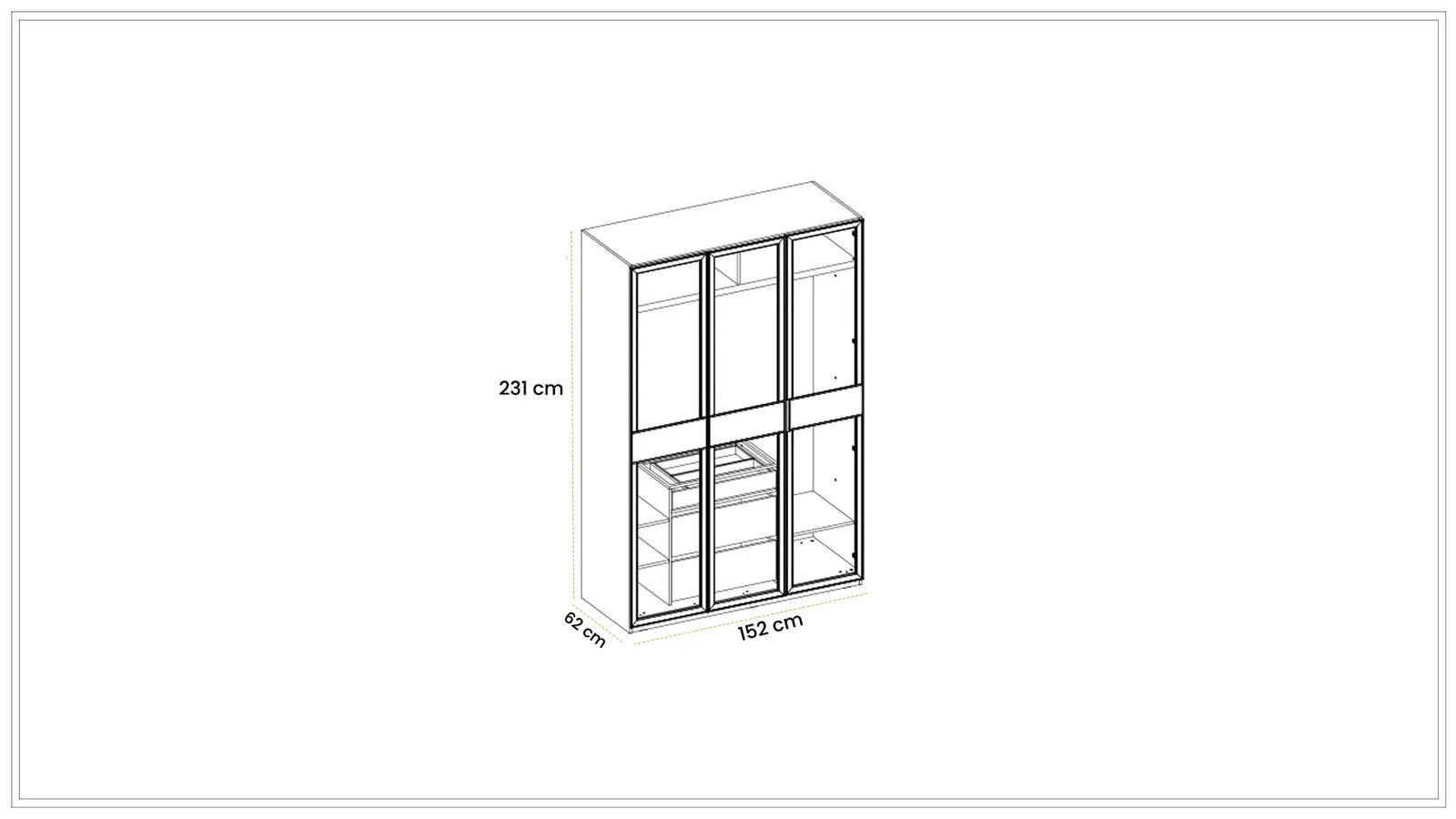 L: 152cm x H: 231cm x W: 62cm